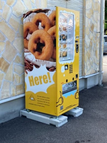 | 導入背景 | 駒ヶ岳工場に併設のル・ノール・リヴィエール(直売所)様 入口横に設置頂きました。 長野県でも初のドーナツ自販機です! フードロス削減による環境負荷軽減(環境側面)と、 地域社会への貢献(社会側面)への取組みとして型崩れなどの アウトレット商品を通年販売する為に食品自販機を購入頂きました。 SDGs(2,12のゴール)に該当する取組です。 |