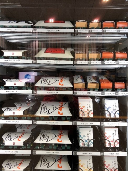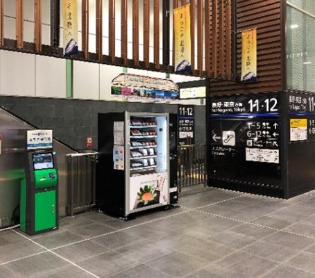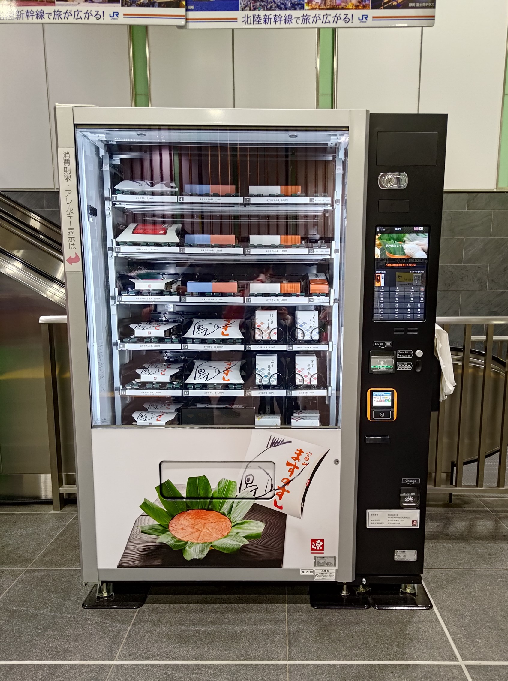 富山駅の新幹線改札口を通ってホームに向かう途中に「ますのすし本舗 源さん」の食品自販機が登場いたしました!