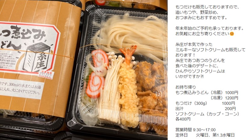 | お客様紹介文 | 糸庄、 創業昭和47年。おかげさまで、煮込みうどんの専門店として 多くのお客様にご愛顧いただいております。 |