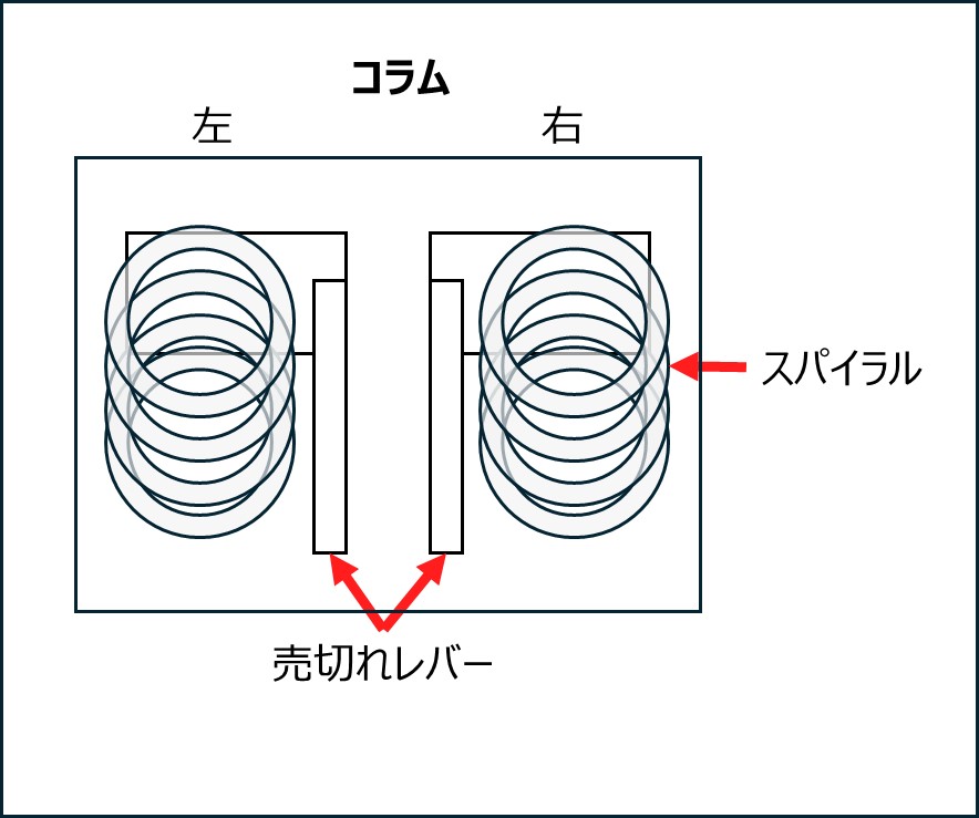 コラム(箱)の下に、売切れスイッチ(白色のレバー)があります。それは商品が装填しているかどうかの感知スイッチです。