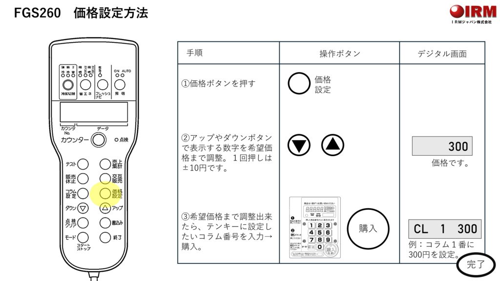 富士電機の食品自販機、FGS260の価格設定方法をご案内いたします。